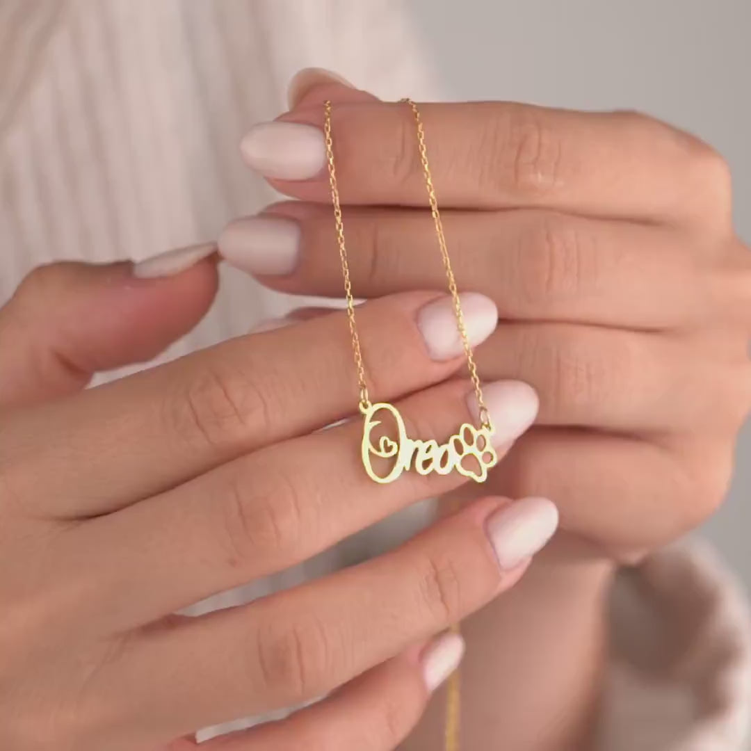 14k Gold Plated Necklace with Custom Name and Paw Pendant