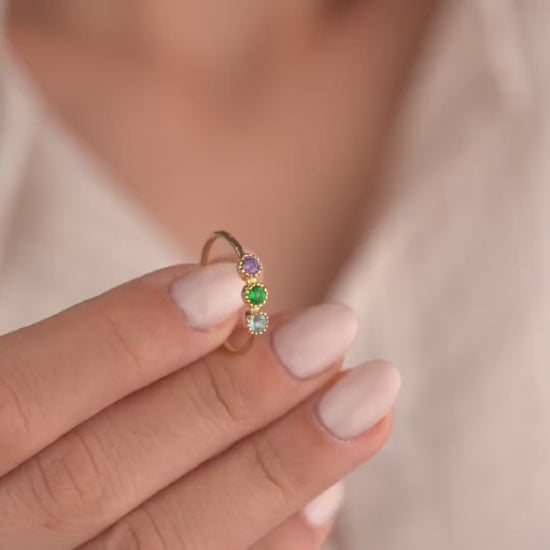 Every ring is meticulously crafted with attention to detail. The birthstones are carefully set to maintain their brilliance and vibrancy. The gold-plated band is polished for a smooth finish and long-lasting shine. This ensures a high-quality, durable piece that can be treasured as a personal keepsake for years.